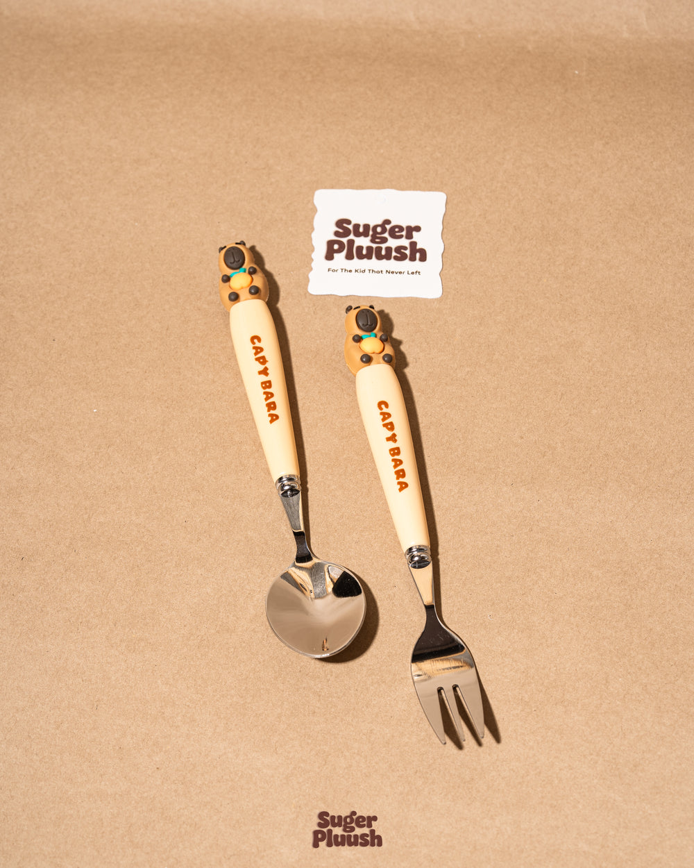 Make mealtimes fun and adorable with our Cute Capybara Kids Stainless Steel Cutlery Set. Designed with playful capybara characters, this spoon and fork set is perfect for school tiffins, picnics, and everyday meals at home.