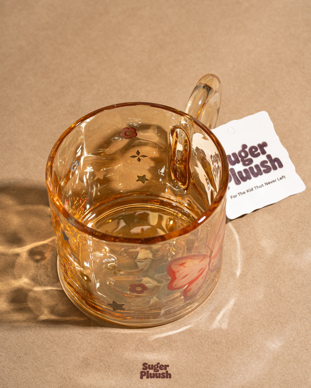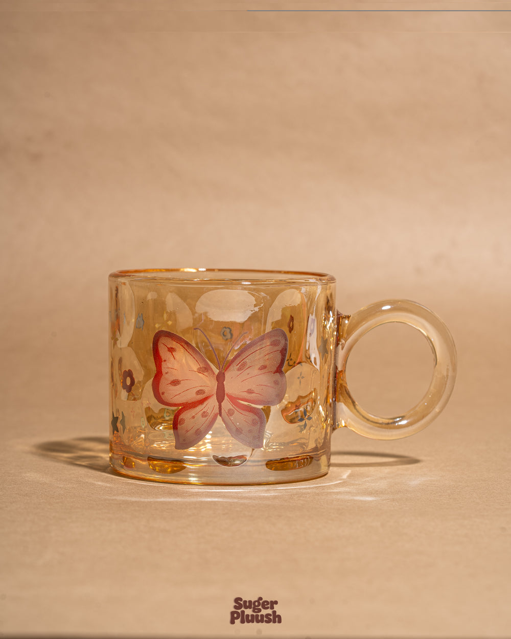 Embossed Butterfly Clear Glass Mug
