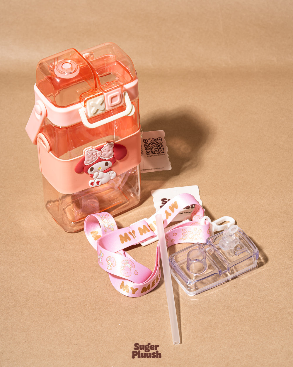 Kawaii Double Sipper Water Bottle – Kuromi, Cinnamoroll, My Melody & Pochacco